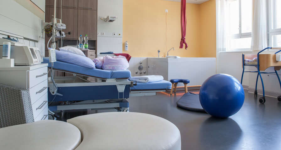 Alle unserer vier Gebärzimmer sind so eingerichtet, dass Sie sich zwischen verschiedenen Geburtspositionen und Geburtsverfahren entscheiden können, solange sich Ihre Wünsche ohne Gefahr für Mutter und Kind erfüllen lassen. Zum Beispiel: