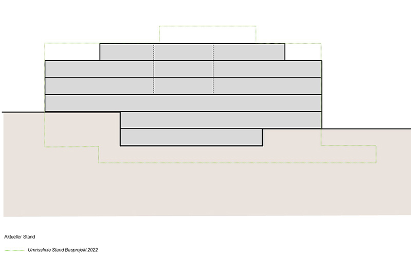 Gegen das 2021 eingereichte Baugesuch wurden in den Stellungnahmen von Stadt und Kanton keine inhaltlichen Argumente vorgebracht und mit den Einwendern konnte eine partnerschaftliche Einigung erzielt werden. Die Tatsache, dass sich die Gebäudevolumen und die Ansichten verändert haben, führt jedoch dazu, dass für jedes Teilprojekt ein neues Baugesuch eingereicht werden muss. So ist das Baugesuch für das Parking bereits in Erarbeitung.